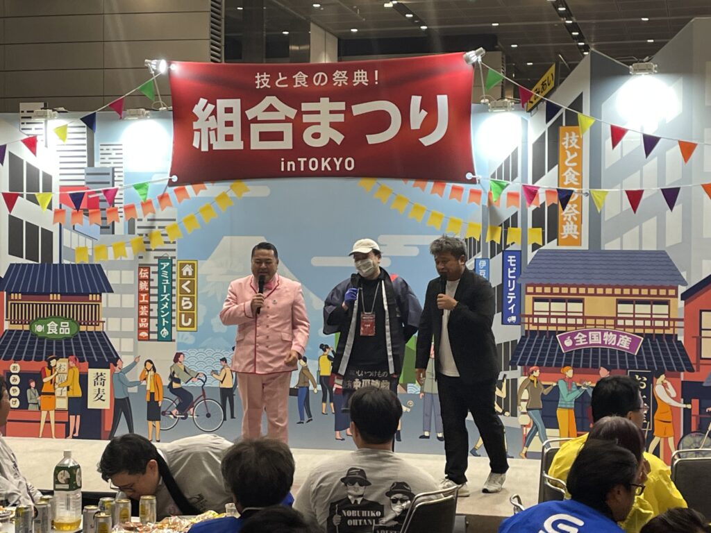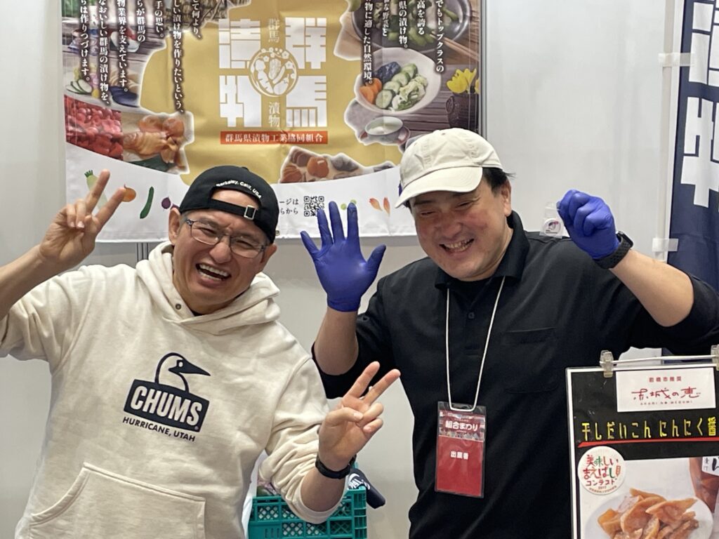 令和7年10月29日・30日開催の「組合まつりinTOKYO」へ出展しました。 ㈲中川漬物(水落様)と群馬県中央会(須藤様、武井様)に漬物の試食販売を実施いただき、群馬の漬物のPR活動を行いました。限定グルメ企画(けんますクッキング)やスタンプラリーへの参加、限定クーポンの配布や出展者交流会の参加など、いろいろな特別企画プログラムへ参加しました。また、沢山の来場者を迎え大盛況でした。(写真提供:群馬県中央会様)